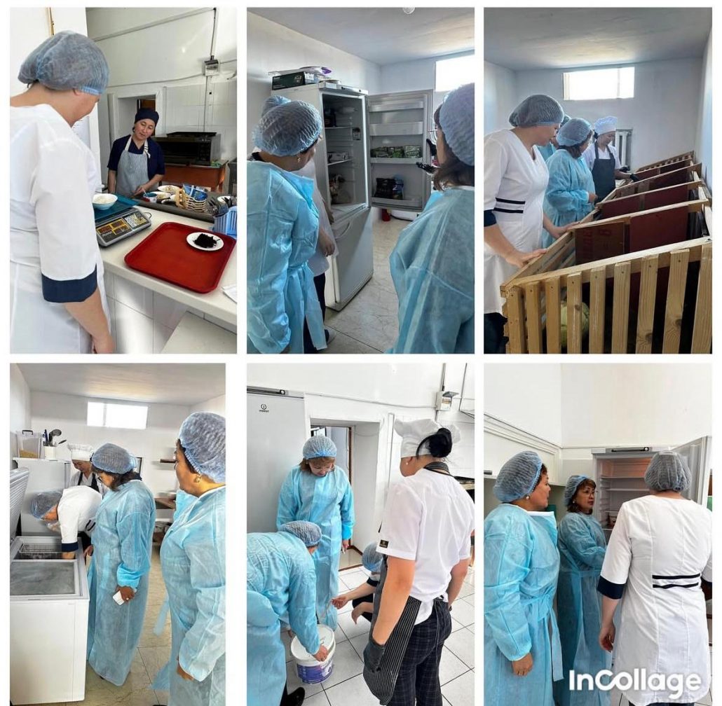 мектеп асханасына барып, дайын тағамдардың сапасын, өнімдердің сақталу жағдайын және санитарлық талаптардың орындалуын тексерді.
