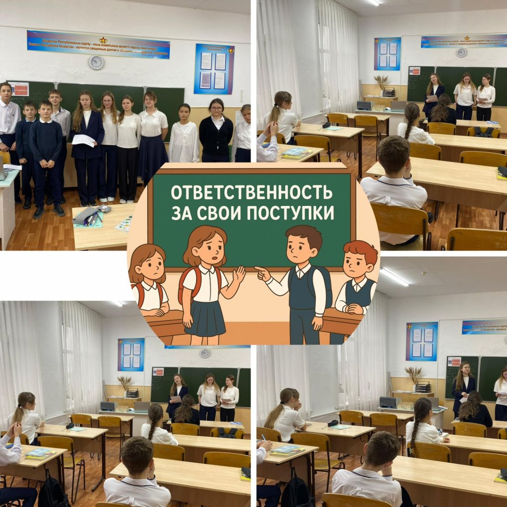 Тәрбие жұмысы жоспарына сәйкес 7 «А» сыныбы мен 10 сынып оқушылары үшін «Өз әрекеттеріне жауапкершілік» тақырыбында сыныптан тыс іс-шара өткізілді.